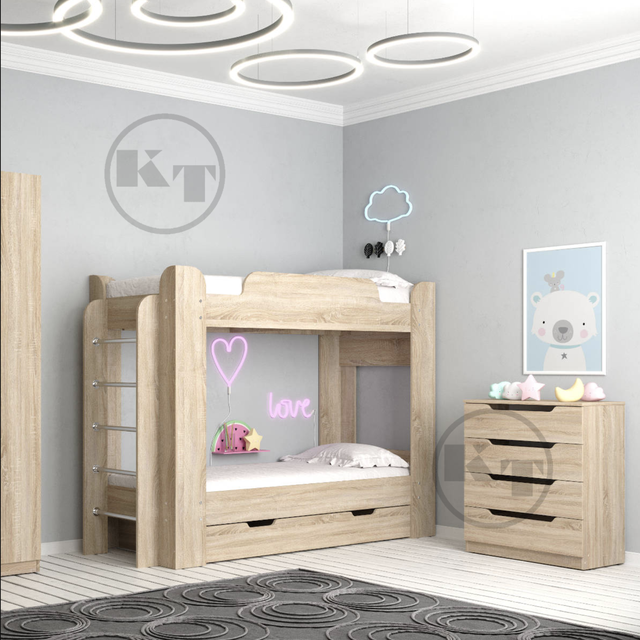 Ліжко-горище виготовлене з сучасного та екологічно чистого ламінованого ДСП.