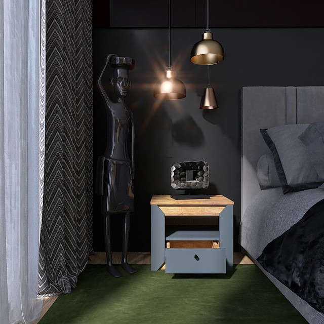 Тумба виготовляється у двох кольорах - "графіт" і "білий", що дозволить придбати її як самостійний предмет меблів. Також у вас є можливість доповнити тумбу іншими елементами модульної системи Нордік для створення функціонального комплекту для спальні, наприклад шафою для одягу та двоспальним ліжком Нордик.