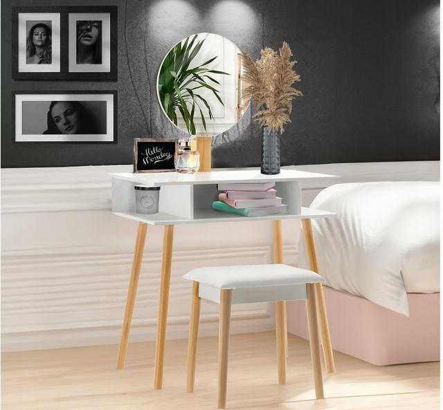 Туалетний столик має відділення для зберігання, де можна зберігати косметику, прикраси та інші потрібні речі.
