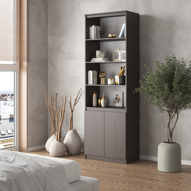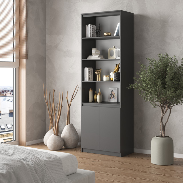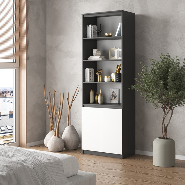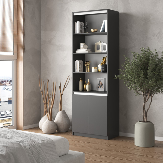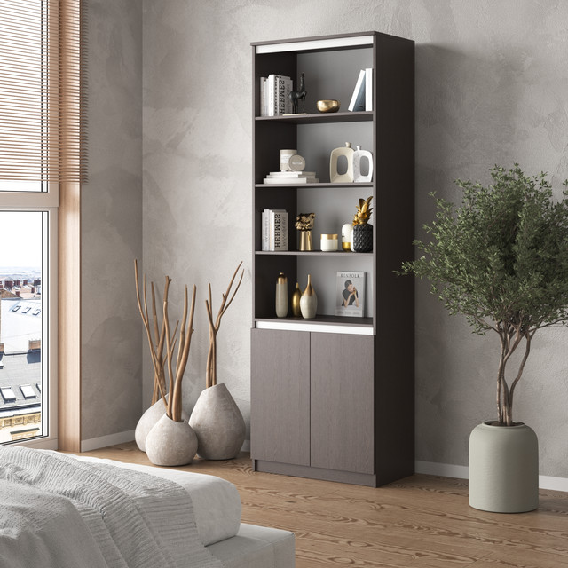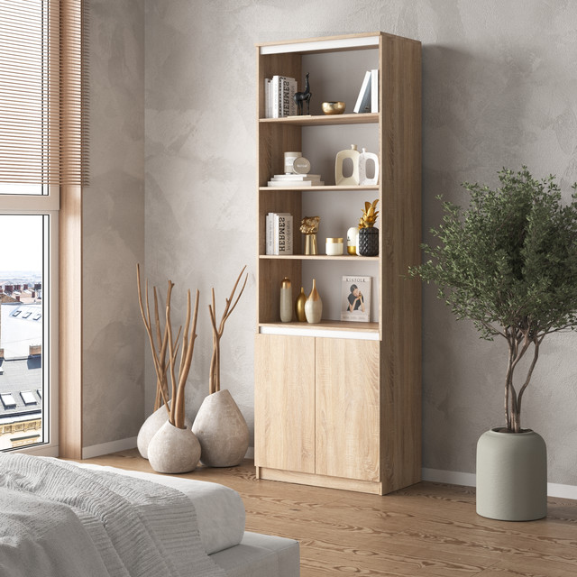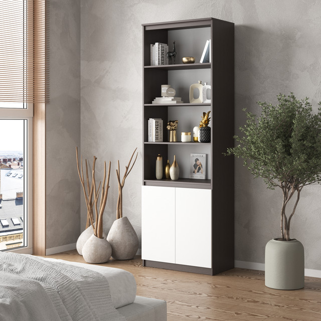 Шафа з полицями для книг, стелаж на 2 двері з фасадами без ручок R-29