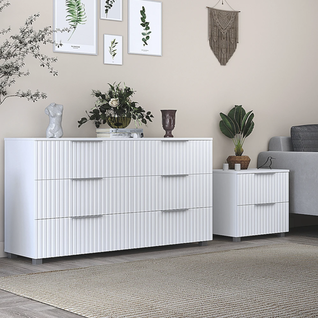 Комод має регульовані алюмієві ніжки, які дозволять встановити його навіть на нерівній підлозі. Комод може бути встановлений близько до стіни над плінтусом, забезпечуючи при цьому зручність і стиль.
