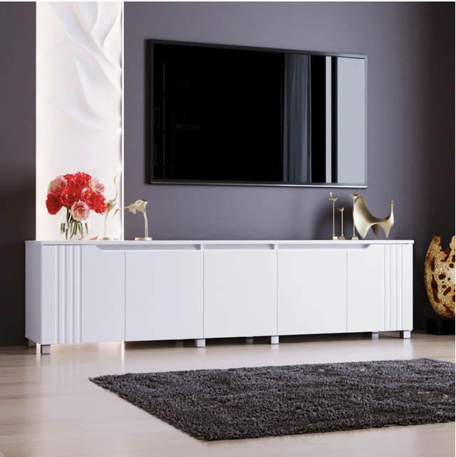 - Оптимізація простору: тумба ефективно використовує простір, надаючи зручне місце для розміщення телевізора та необхідної техніки.